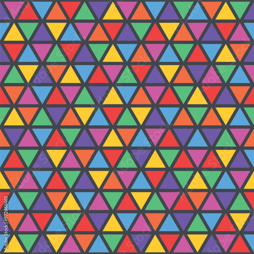 Seamless pattern of colorful triangular geometric shapes with dark backgroun