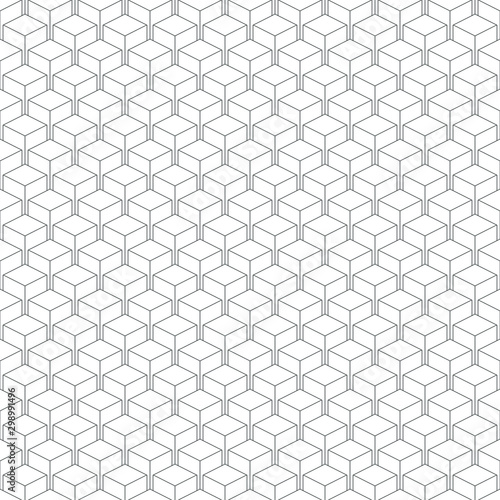 Seamless pattern of isometric cubes, pattern if thin lines, black and white vector illustration.