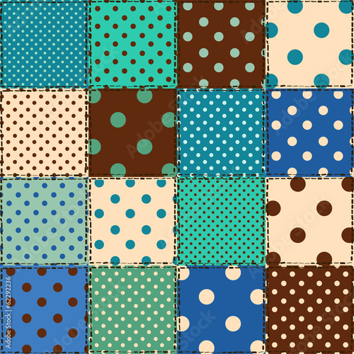 Seamless pattern of polka dot patchworks