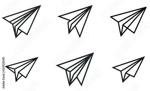 Seamless pattern of simple black line paper airplanes.