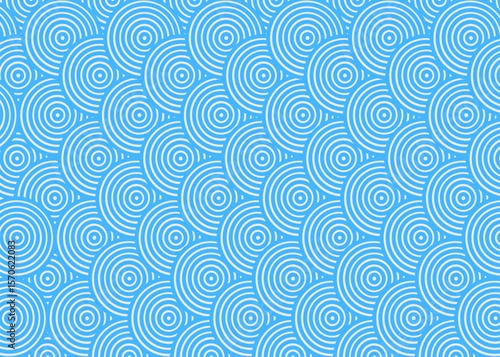 Seamless pattern of white concentric semi-circles on blue pattern background. It creates a modern, rhythmic, and organic look. Ideal for eco-themed designs, wallpapers, textiles, or packaging.