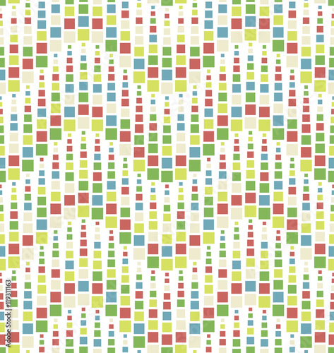 Seamless pattern on a white background. Has the shape of a wave. Consists of geometric elements of square shape in color. Useful as design element for texture, pattern and artistic compositions.