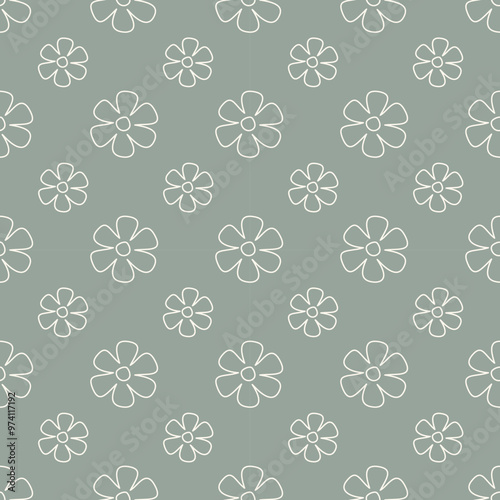 Seamless pattern with abstract outline flowers. Simple floral pattern vector background.