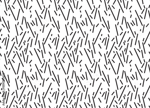 Seamless pattern with black hand drawn dashed lines on white background, abstract rainfall or sprinkle texture.