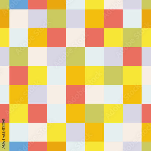 Seamless pattern with colorful cells. Bright geometric repeating background for printing on fabric, textiles. Surface designsquares in the style of patchwork. Vector illustration.
