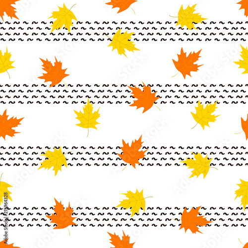 Seamless pattern with colorful maple leaves on the white background