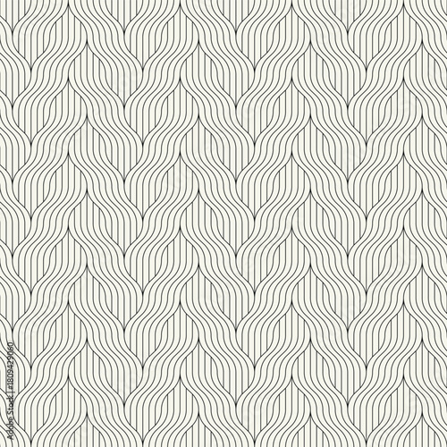 Seamless pattern with geometric waves. Endless stylish texture. Ripple bold monochrome background. Linear weaved grid. Thin interlaced swatch.