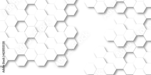 Seamless pattern with hexagons. 3d Hexagonal structure futuristic white background and Embossed Hexagon. Hexagonal honeycomb pattern background with space for text. Abstract Technology, Futuristic.