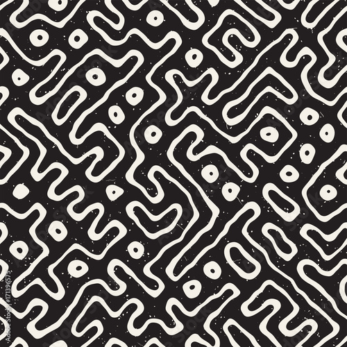Seamless pattern with maze lines. Monochrome abstract background. Vector hand drawn labyrinth.