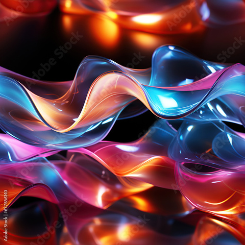 seamless pattern with neon volumetric multicolored 3d waves on black background