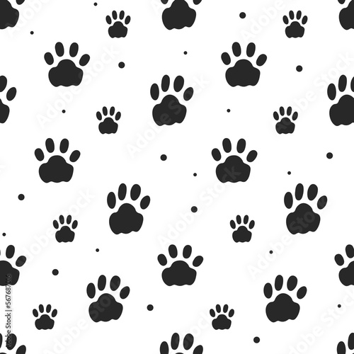Seamless pattern with paws. Illustration on transparent background