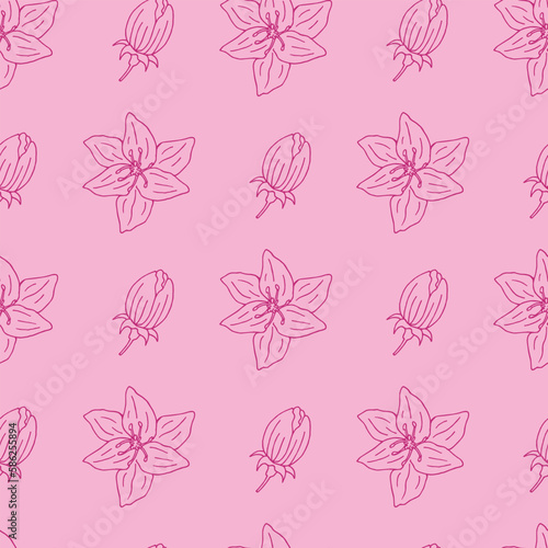 Seamless pattern with pink flowers on light pink background. Vector image.