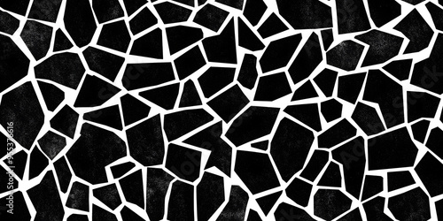 Seamless playful hand drawn black and white cracked cobblestone tile mosaic fabric or wallpaper pattern. Abstract cute broken kintsugi polygons background texture in a trendy doodle line art style.