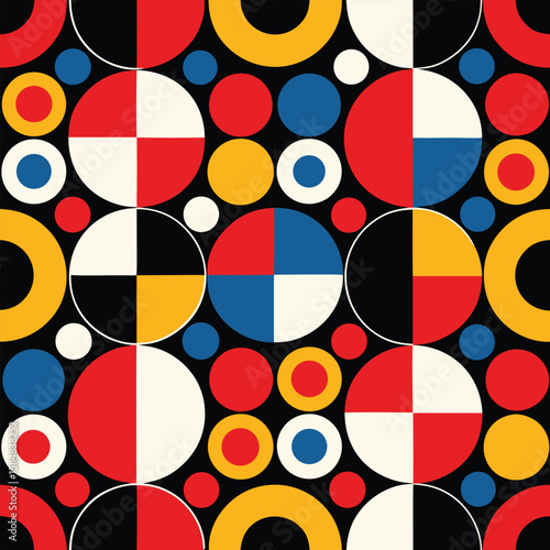 Seamless red Bauhaus circle pattern background wallpaper