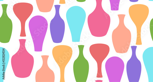 Seamless texture with decorative multicolored vases. Vector background for your creativity