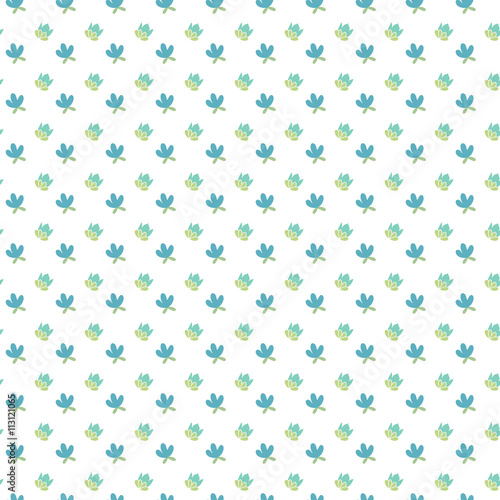 Seamless vector pattern with blue flowers on a white background.