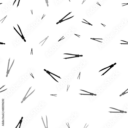 Seamless vector pattern with compass dividers, creating a creative monochrome background with rotated elements. Illustration on transparent background