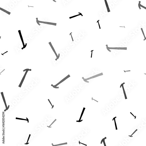 Seamless vector pattern with hammer symbols, creating a creative monochrome background with rotated elements. Illustration on transparent background