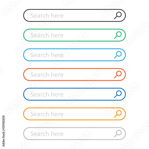 Search bar field. Set vector interface elements with search button. Flat vector illustration on white background.
