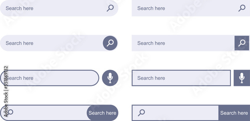 Search Bar for UI design. Set of elements for design interface of website. Search form. Navigation bar web icons.