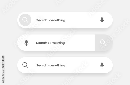 Search Bar with suggestions for UI UX design and web site. Search Address and navigation bar icon. Collection of search form templates for websites. Search engine web browser window template.