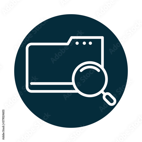 search icon, folder file data magnifier block and line icon