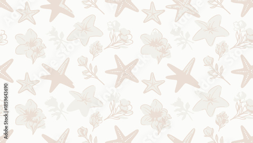 Seashell and floral repeating pattern