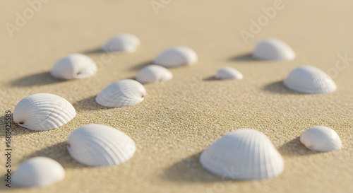 Seashells on sand background
