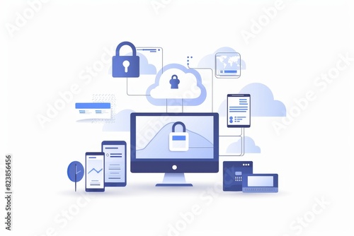 Secure cloud computing with digital devices and online data protection technology illustration