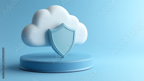 Secure Cloud Concept with Shield on Blue Background Representing Data Protection and Cybersecurity Strategy