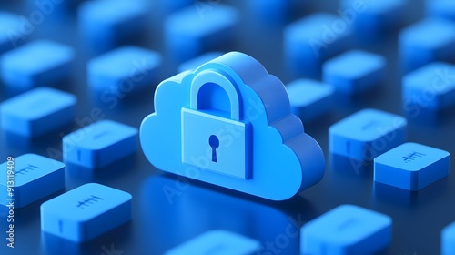 Secure cloud storage concept with a blue cloud icon and a lock, representing data protection and internet security.