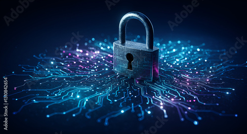 Secure Crypto Network - Padlock Inside a Digital Network