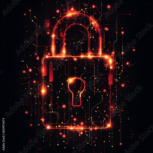 Secure Digital Landscape with Glowing Padlock and Futuristic Binary Elements
