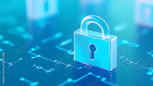 Secure digital padlock symbolizing cybersecurity and data protection on a bright blue technological background.