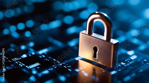 Secure padlock placed on a digital circuit board representing cybersecurity and data protection : Generative AI