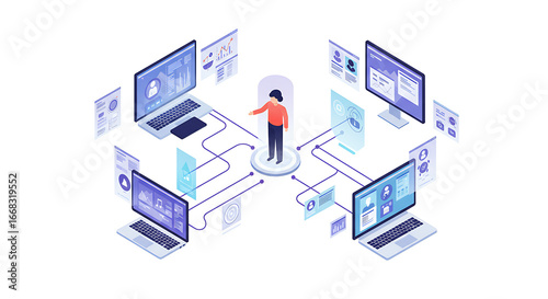 Secure Personal Data Management and Digital Ecosystem Connectivity Across Multiple Devices Illustration