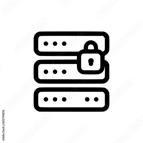 Secure server icon showing a data storage unit protected by a padlock symbol, representing data privacy and cybersecurity.