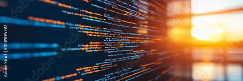 Secure Software Development Abstract Code on Computer Screen with Light Leak Background