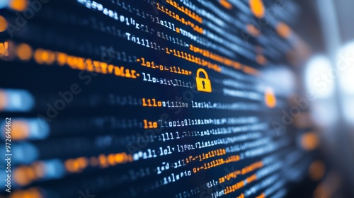 Secure Software Development Code on Computer Screen with Lock Icon, Digital Security Concept.