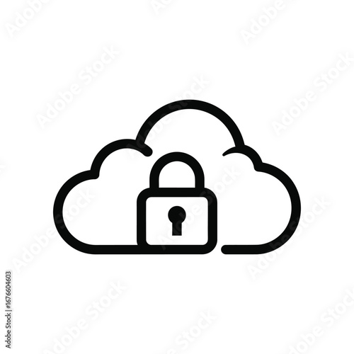 Secured Cloud Icon: A minimalist cloud with a prominent padlock, illustrating data security and safe storage. This icon encapsulates the essence of protection.