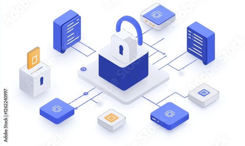 Security chain Network Illustration showing a secure network connection with data packets encrypted for secure transmission, ensuring data integrity and, Generative AI