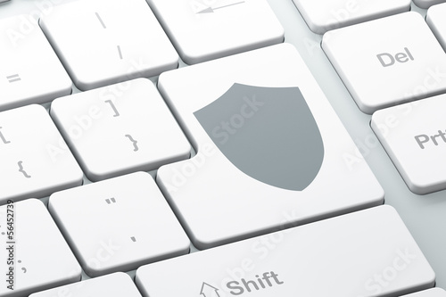 Security concept: Shield on computer keyboard background