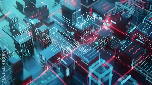 Security Protocols in IoT: Illustrate a secure IoT environment with visual elements like locks, shields, and encrypted data flows, emphasizing the importance of security protocols in sensor technology