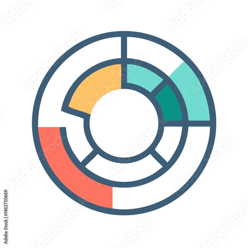 Segmented Circle Chart Icon Representing Infographic Breakdown and Data Visualization