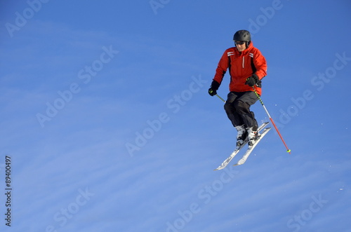 Senior beim Skilaufen im Sprung