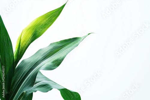 Serene elegance of fresh green leaves against a bright white backdrop evoking natural beauty