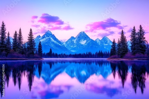 Serene mountain lake reflecting vibrant sunset hues