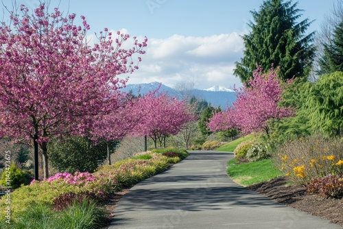 Serene Path with Blooming Cherry Blossom Trees
