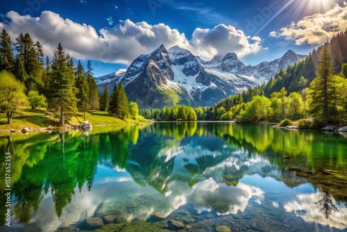 Serene Spring Mountain Lake: Breathtaking Landscape Photography