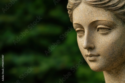 Serene stone statue in natural setting